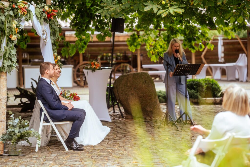 Frauke hat unsere Hochzeit unglaublich toll begleitet. Es ist wirklich außergewöhnlich wie viel Liebe zum Detail und Herzblut in Ihrer ganzen Vorbereitung und natürlich der Rede steckten.